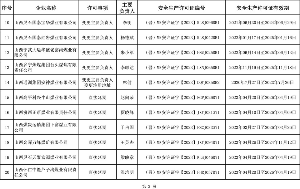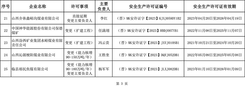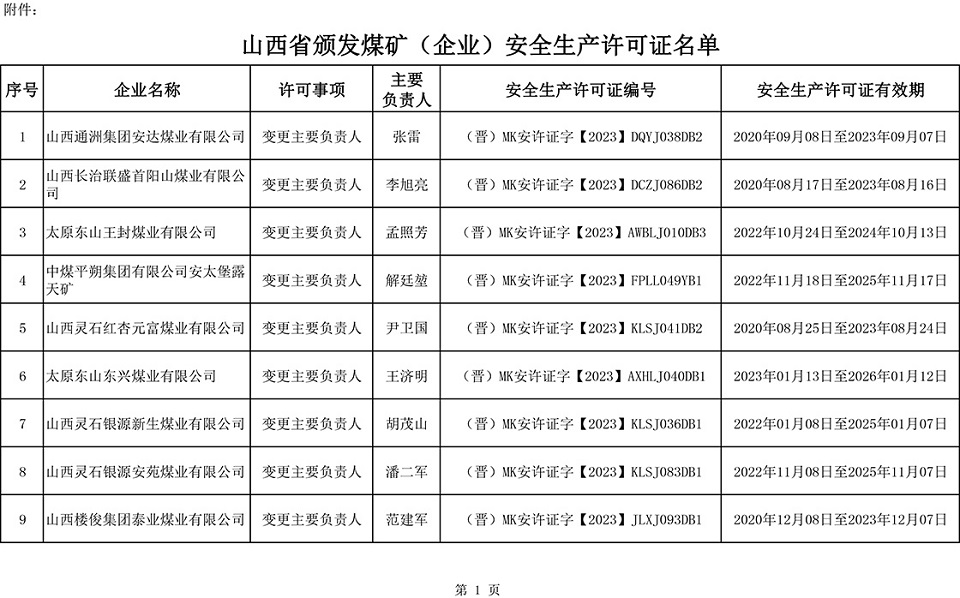 山西省應急管理廳關于頒發(fā)煤礦(企業(yè))安全生產許可證的公告