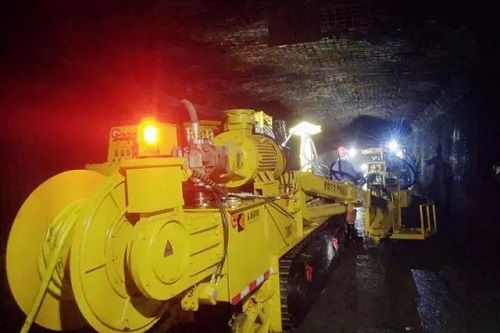 5、近日,朱家峁煤礦首次在井下1308回撤通道應(yīng)用防爆履帶錨機(jī)鉆車(chē),該設(shè)備有效解決了井下巷道補(bǔ)強(qiáng)支護(hù)作業(yè)地點(diǎn)分布零散、工作量大和效率低等問(wèn)題。