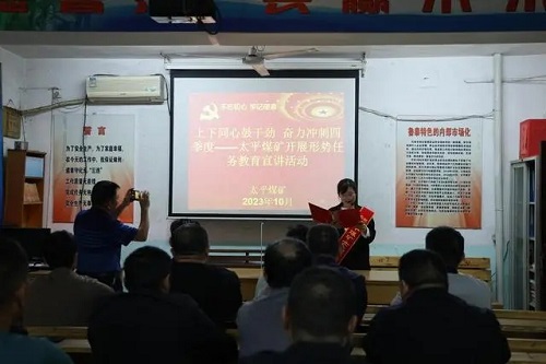 2、近日,山東魯泰控股集團(tuán)太平煤礦組織女工協(xié)管員深入各區(qū)隊(duì)高質(zhì)量開(kāi)展形勢(shì)任務(wù)教育宣講,引導(dǎo)全礦干部職工團(tuán)結(jié)一心、攻堅(jiān)克難,“決戰(zhàn)四季度,打好收官戰(zhàn)”。