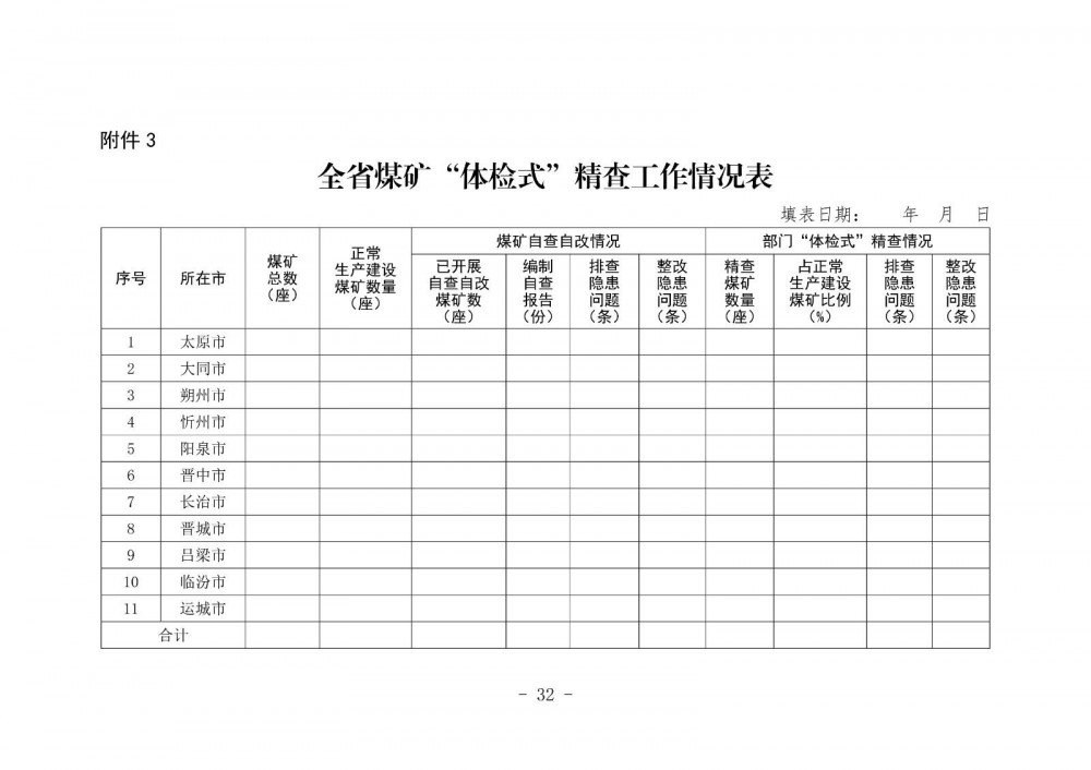 3.全省煤礦“體檢式”精查工作情況表