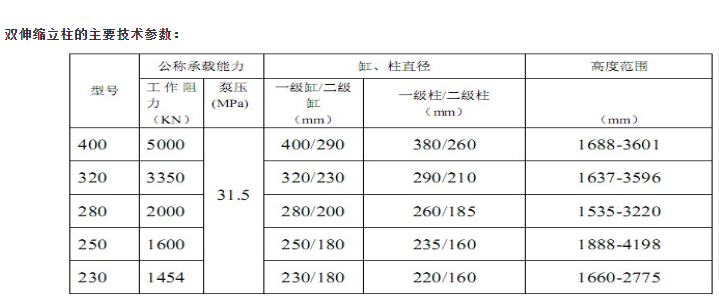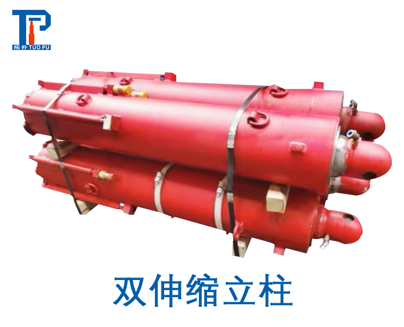 雙伸縮立柱主要由外缸、中缸、活柱、大導(dǎo)向套、小導(dǎo)向套、底閥及密封件、連接件組成。