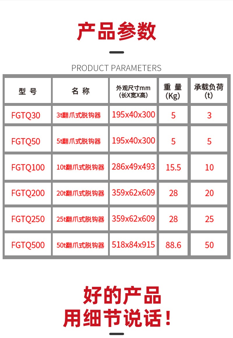 ●脫鉤器由主板、主板上部的起吊扣件銷孔、主板下部的托板、通過鉤爪鉸軸和托板鉸連的鉤爪、通過扳杠支架和主板相鉸連的扳杠以及鉤爪上端的爪掌組成。