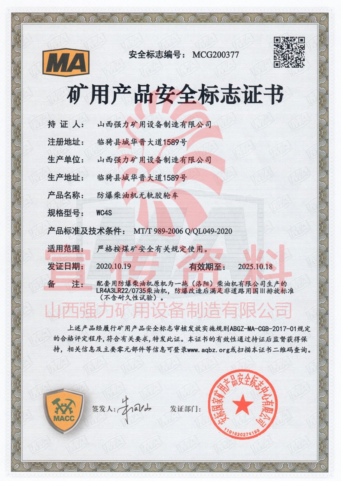 2、動力采用我公司研發(fā)的國三QL4105DZLDFB防爆發(fā)動機,增壓中冷、電控高壓共軌噴射,動力強勁,達到國三排放標(biāo)準(zhǔn)。