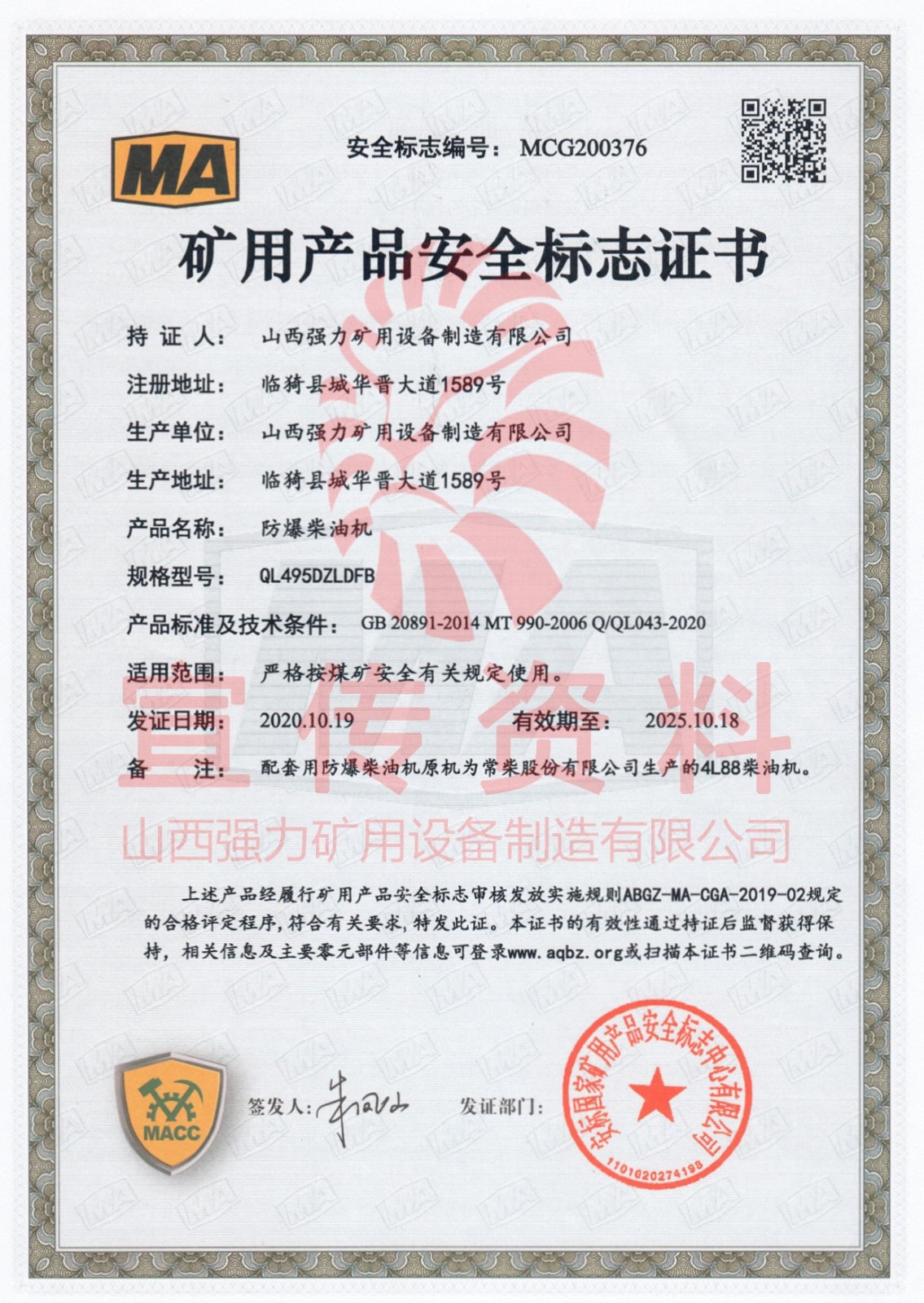 2、動(dòng)力采用我公司研發(fā)的國三QL4105DZLDFB防爆發(fā)動(dòng)機(jī),增壓中冷、電控高壓共軌噴射,動(dòng)力強(qiáng)勁,達(dá)到國三排放標(biāo)準(zhǔn)。