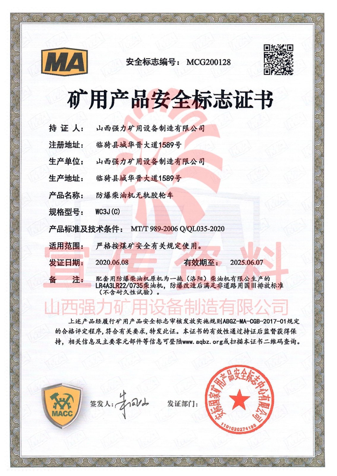 2、動(dòng)力采用我公司研發(fā)的國(guó)三QL4105DZLDFB防爆發(fā)動(dòng)機(jī),增壓中冷、電控高壓共軌噴射,動(dòng)力強(qiáng)勁,達(dá)到國(guó)三排放標(biāo)準(zhǔn)。