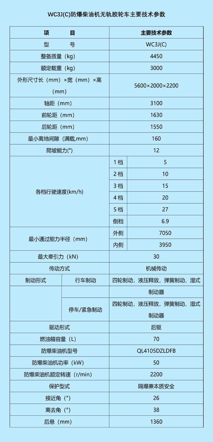 - 產(chǎn)品名稱:WC3J(C)防爆柴油機(jī)無(wú)軌膠輪車
