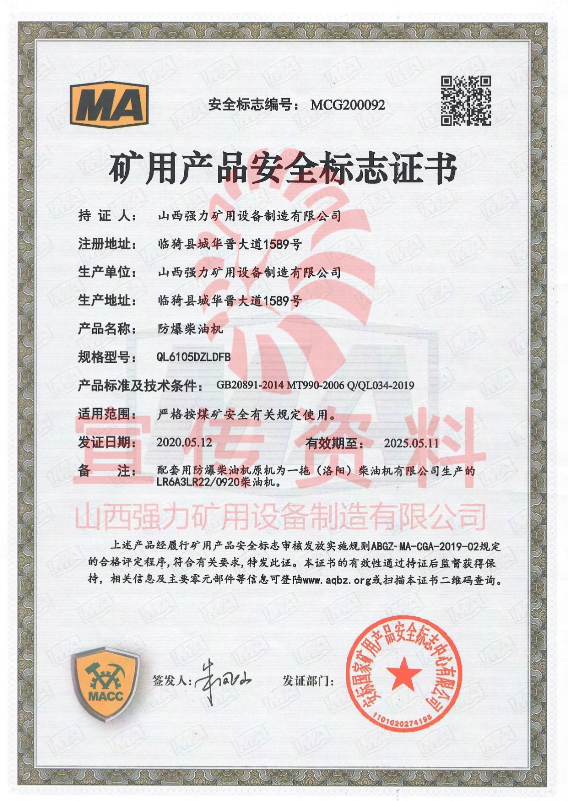 2、動(dòng)力采用我公司研發(fā)的國(guó)三QL6105DZLDFB防爆發(fā)動(dòng)機(jī),增壓中冷、電控高壓共軌噴射,動(dòng)力強(qiáng)勁,達(dá)到國(guó)三排放標(biāo)準(zhǔn)。