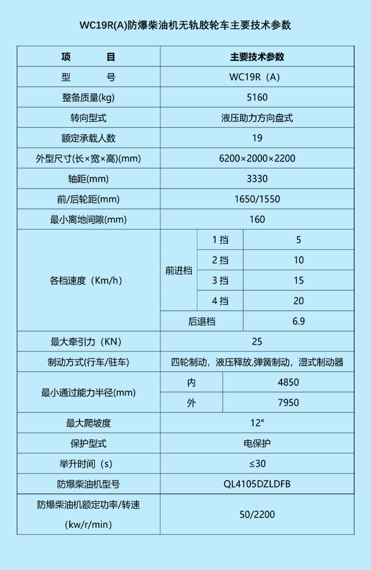 - 產(chǎn)品名稱:WC19R(A)四驅(qū)防爆柴油機(jī)無軌膠輪車