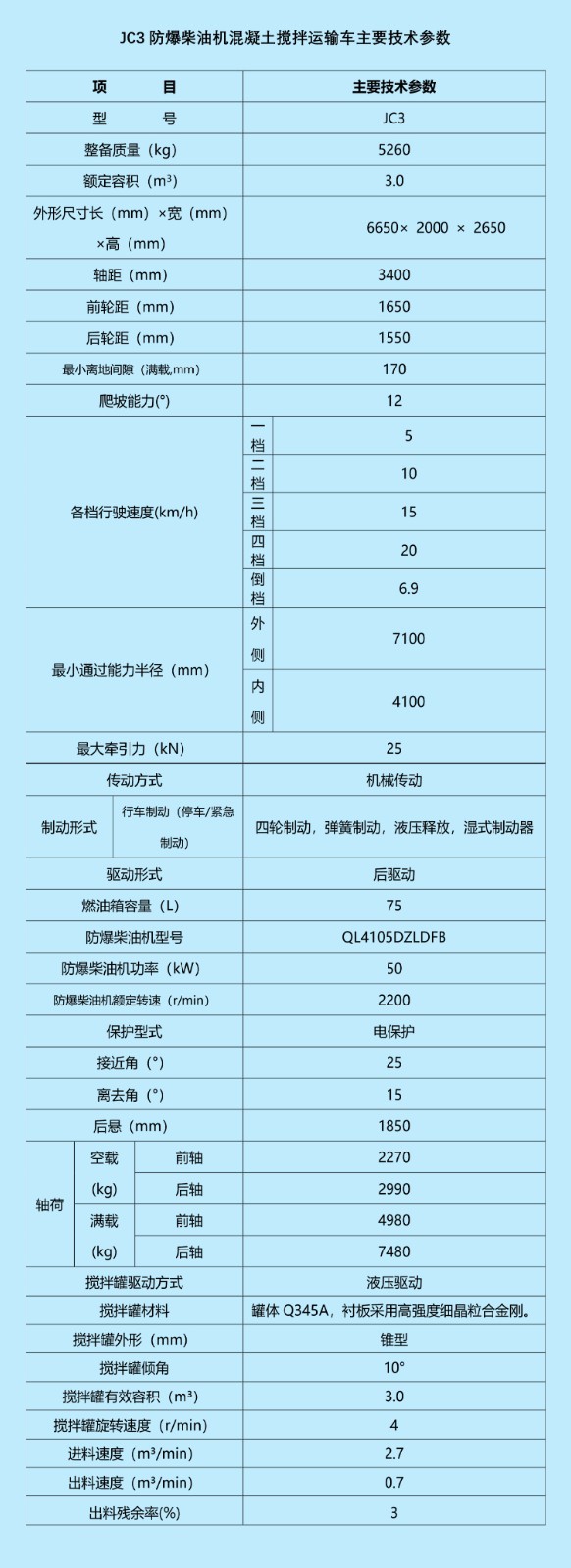 JC3.0防爆柴油機(jī)混凝土攪拌運(yùn)輸車