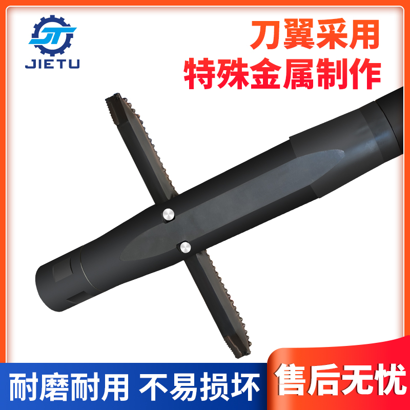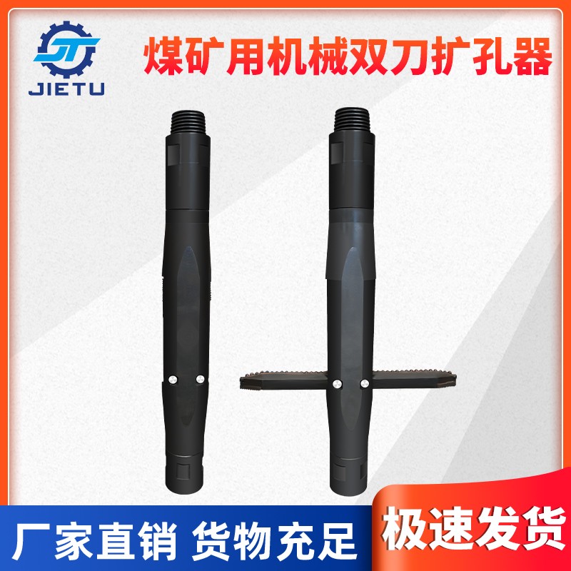 主要適用于底抽巷穿層鉆孔,本煤層順層鉆孔增透作業(yè),在鉆孔進行操作時,靜壓水常規(guī)鉆進,當達到需要擴孔的位置時,輸入高壓水,達到一定壓力后推動內(nèi)置活塞,使刀翼打開進行旋轉(zhuǎn)排渣,緩慢鉆進,進行擴孔造穴工作。