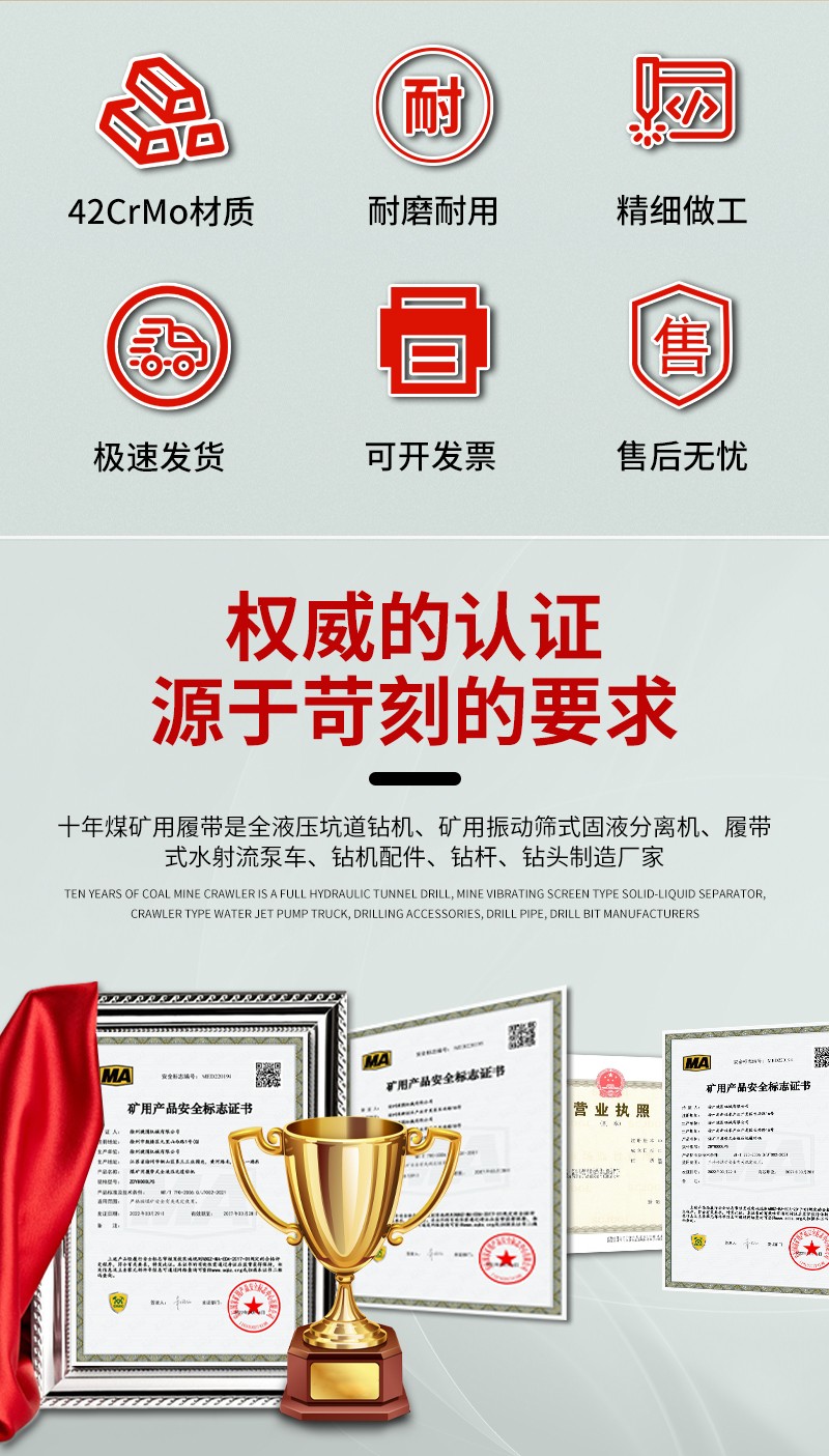 此外,為了提高動力頭主軸的加工精度和減少運(yùn)轉(zhuǎn)時(shí)的噪音、振動等負(fù)面影響,煤礦鉆機(jī)配件動力頭主軸還需要采用高精度的機(jī)械加工工藝和嚴(yán)格的工藝流程。其中包括精細(xì)的數(shù)控加工和表面處理等工序,確保動力頭主軸的幾何尺寸和表面質(zhì)量符合要求。