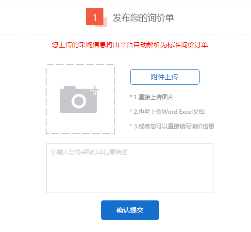 3.上傳您的“詢價單”文件(可以是圖片、Word、Excel格式文件),確認提交后系統(tǒng)自動解析發(fā)布您的詢價單