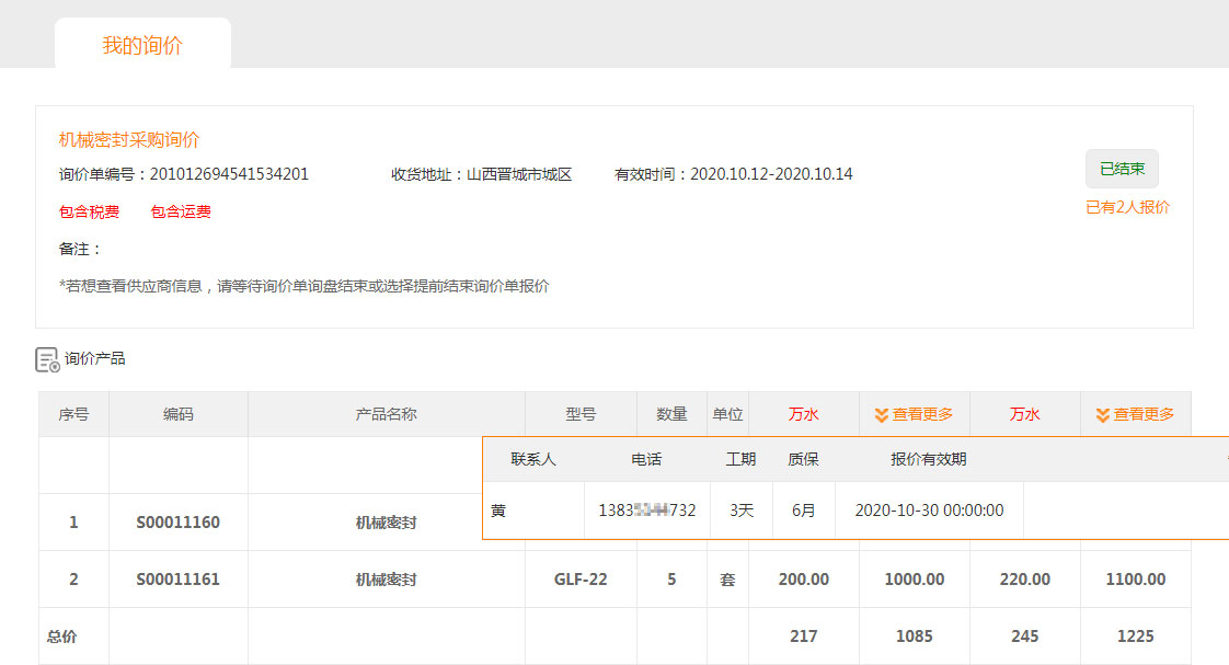 5.查看報價結(jié)果及報價人信息,雙方溝通報價結(jié)果,完成交易