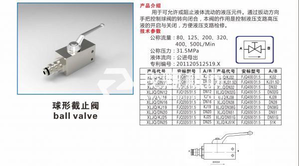 球形截止閥用于可允許或阻止液體流動(dòng)的液壓元件。 通過扳動(dòng)方向手把控制球閥的轉(zhuǎn)向閉合,本閥的作用是控制液壓支路高壓液的開啟與關(guān)閉,方便液壓支路檢修。