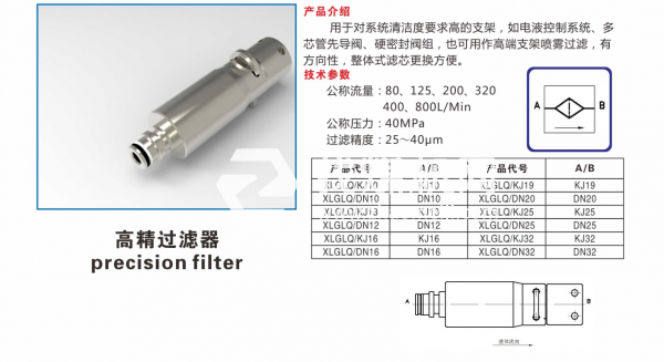 用于對系統(tǒng)清潔度要求高的支架,如電液控制系統(tǒng)、多芯管先導(dǎo)閥、硬密封閥組,也可用作高端支架噴霧過濾,有方向性,整體式濾芯更換方便。